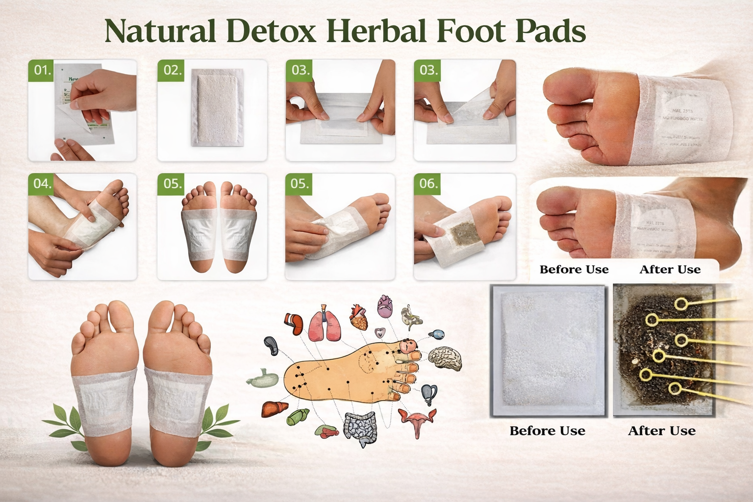 Experience the calming power of herbal detoxification with our premium footpads.